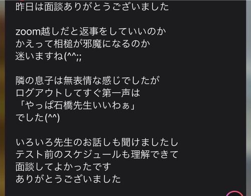 他県からオンライン参加の方。 嬉しいなぁ「やっぱ石橋先生いいわぁ」と言っていただける強さ。 これうちの強さ。 6月もオンライン継続とのこと。嬉しいなぁ 数百キロ離れている場所。 一度も会ったことない人。 ここまで言っていただけるのは本当にすごいこ…