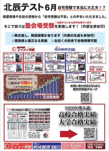 7月19日の、北辰テストも家での受験となってしまいました。。 厳正なる実施ができるのか?手順は? いろいろ、保護者様や、生徒の皆さんから不安の声が上がっています。 そこで、我々は、6月に引き続き、7月も、 「北辰テスト塾会場受験」 を実施します!! …